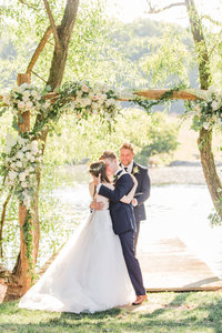 Family photos most often happen right at the ceremony space. We may do it under the arbor if the lighting is nice or we may shift you into to under a tree if the lighting is better there. If we're experiencing some rain, we may take photos under the over hang on The Barn's patio. Either way, we'll put you in the very best spot for lighting.